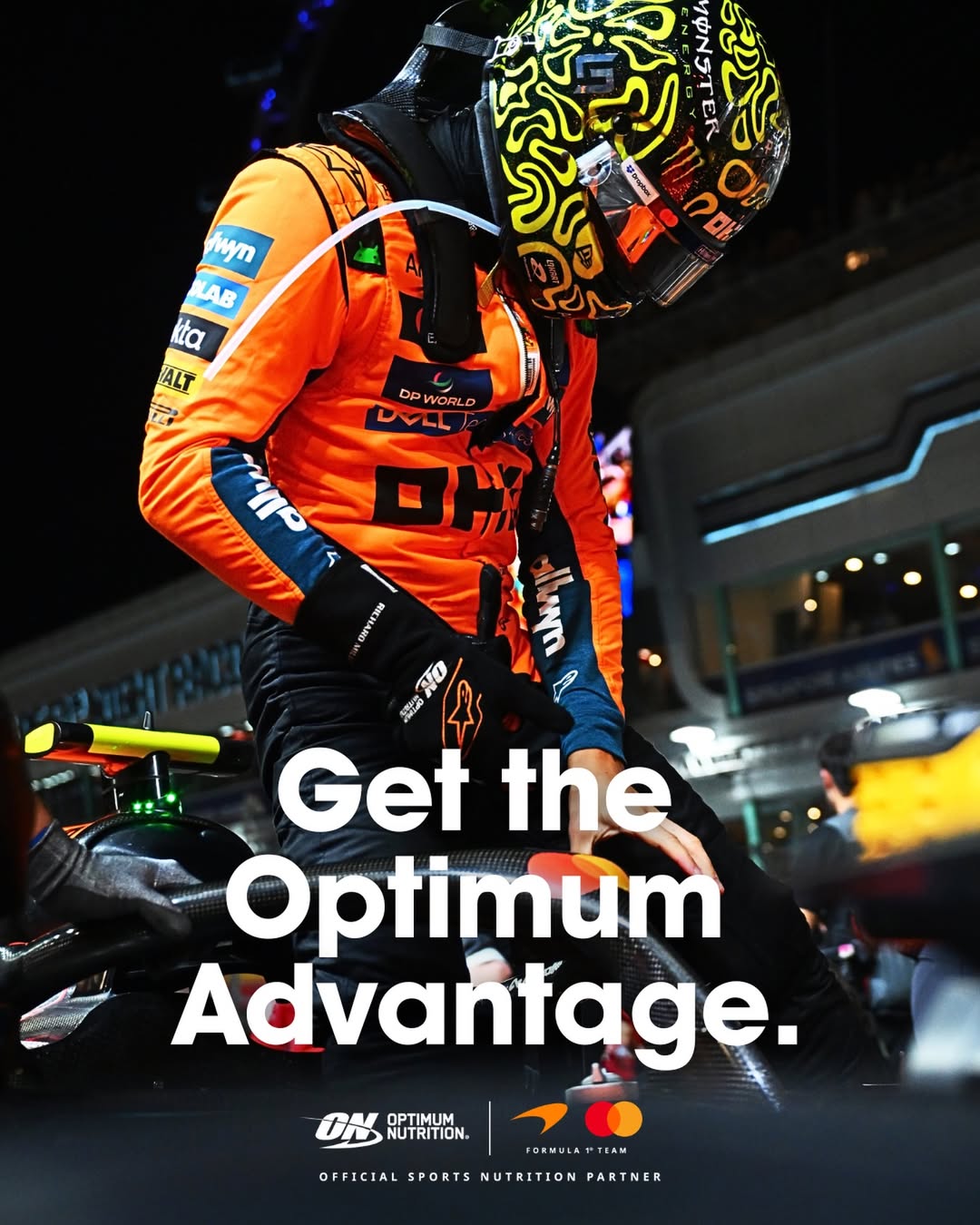 Through its partnership with McLaren F1, Optimum Nutrition contributes to the teamās preparation and recovery strategies throughout the 2026 season.